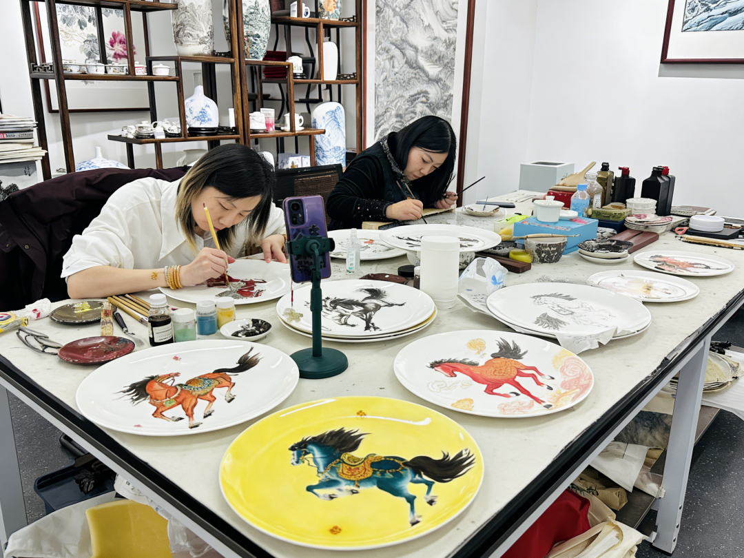 在怀仁市陶瓷科技艺术创新中心,陶瓷艺术大师与学员们以瓷为纸、以釉为墨,围绕马年主题潜心创作。一件件彩绘骏马瓷盘、寓意“马到成功”的茶具等作品陆续诞生,将生肖文化的吉祥寓意与千年瓷艺的温润质感巧妙结合。