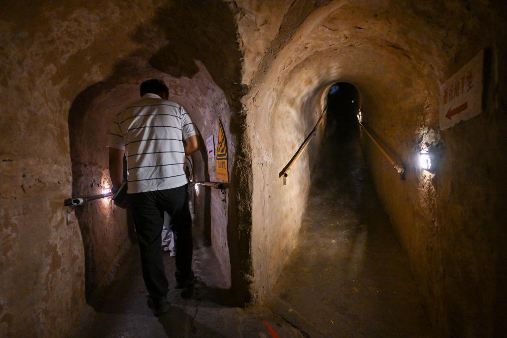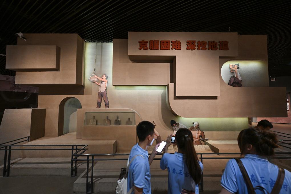 7月6日,游客在冉庄地道战纪念馆内参观拍摄。新华社记者 李鑫 摄
