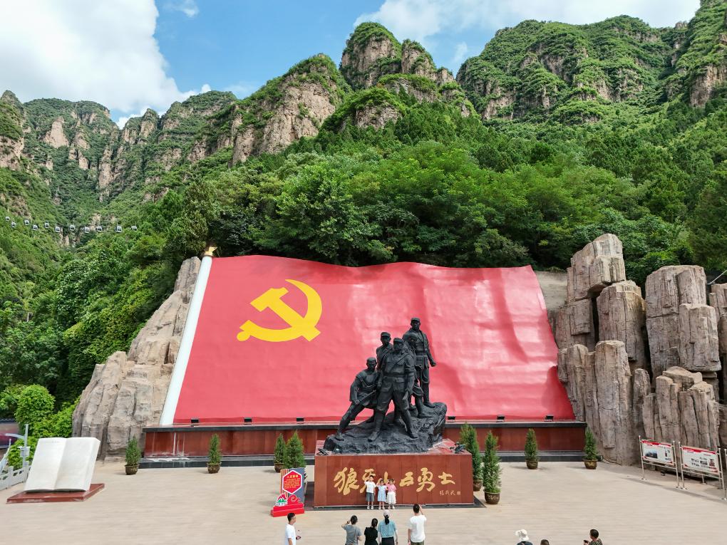 盛夏的狼牙山,游人驻足,神情肃穆。五尊青铜雕像静静伫立,嶙峋山岩将他们的身躯勾勒出永恒的剪影。