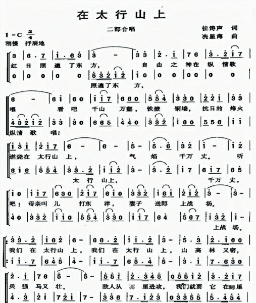 这首脍炙人口、激发斗志的《在太行山上》,抒发了太行儿女为国捐躯,英勇杀敌的革命精神,抒发了中华儿女救亡图存、报效祖国的豪情壮志。(作者:中国作家协会会员、文史学者 王宏伟)