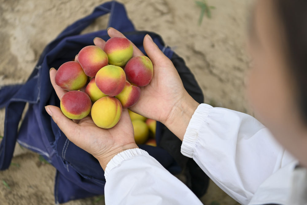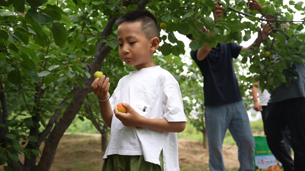 眼下,兴县蔡家崖村的杏林迎来采摘季。今年6岁的王希尧正跟着家长在果园里体验采摘乐趣。“我自己摘的杏吃着可甜啦。”他说。