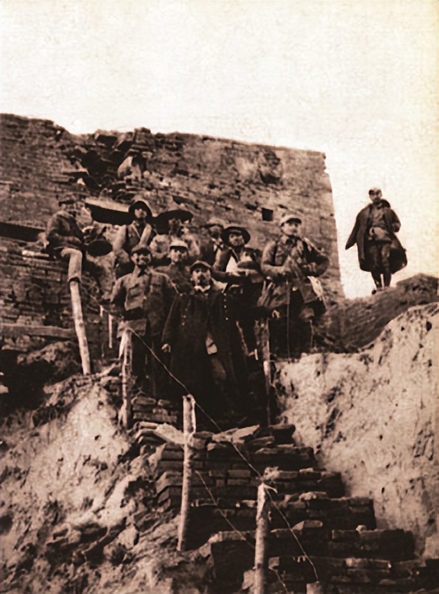 八路军第一二九师三八六旅攻进榆社城,与日军展开了激烈战斗。图为攻占榆社城后,八路军第一二九师三八六旅旅长陈赓(带照相机者)、参谋长周希汉(前面穿大衣者)与战士们合影。