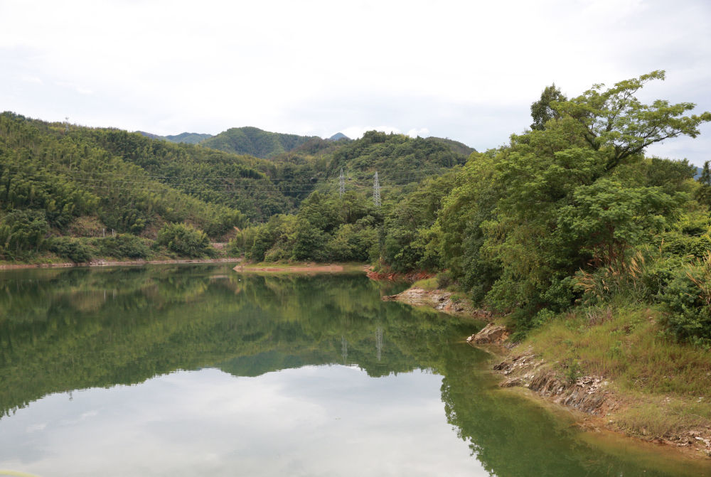 这是陈汉乡的钓鱼台水库,水库中央树林处为“陈汉沟会师”旧址(7月22日摄)。新华社记者 肖磊涛 摄