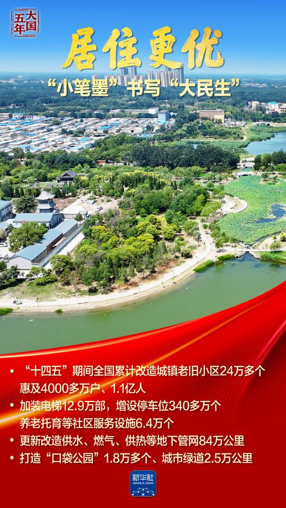 千万套保障性住房拔地而起,托起新市民、年轻人“此心安处”的安居梦;数十万个老旧小区焕然一新,老街坊、老邻居原地邂逅现代生活……从推动“保交楼”到建造“好房子”,从老旧小区改造到城市环境焕新,“十四五”这五年,一幅幅“住有所居、居有所安”的民生画卷徐徐展开,把人民群众美好生活的“小确幸”一笔一画写进现实。