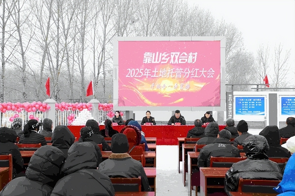 绥棱县靠山乡双合村土地托管分红大会现场。(受访者供图)
