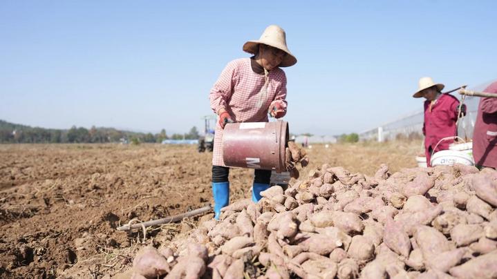 江西省吉安市永丰县佐龙乡的甘薯产业基地喜获丰收。(刘菲菲 摄)