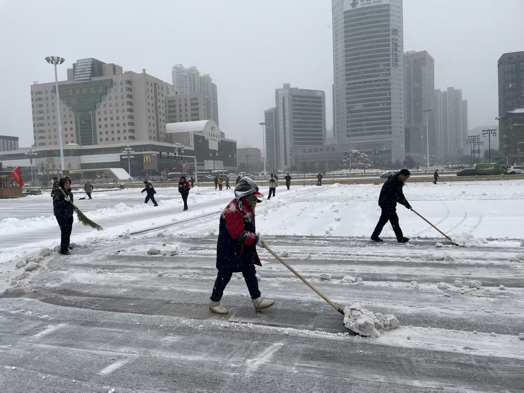 目前,清雪除冰及相关绿化维护工作仍在有序进行中。