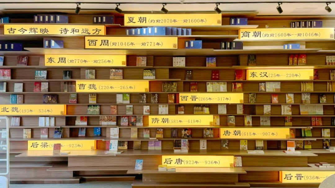 书店以河洛文化为主脉络,把“三类文化、两类人物”融入书店的每个角落。折面造型的九曲黄河电梯动线、展示十三朝历史和文化典籍的文化墙、活字印刷组成的三河汇流图、古典诗词投影,让读者能直观地感受到洛阳深厚的历史文化底蕴。