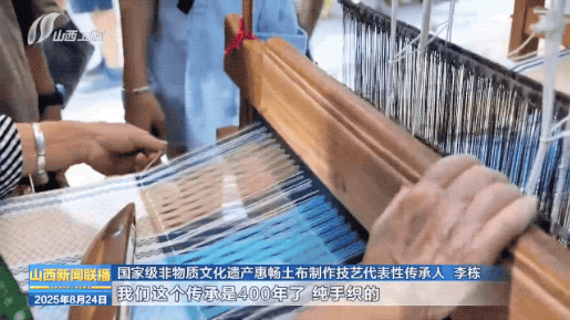 运城展区,绛州木版年画制作、永济惠畅织布体验等项目,也吸引了不少观众参与。踩踏板、穿梭子、拉绳线,传承人手把手教大家操作织机。