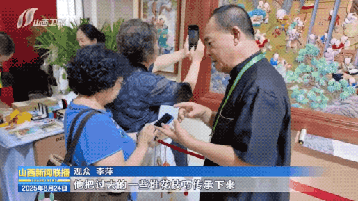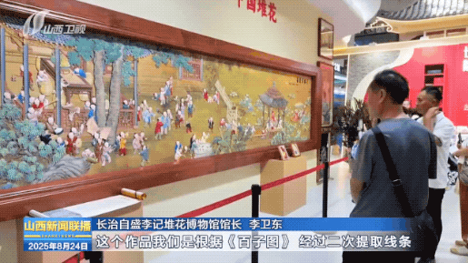 这个作品我们是根据《百子图》,经过二次提取线条,11个人参与制作,历时将近五年创作而成,我们通过文博会让更多的人来了解潞绸文化和中国堆花艺术。
