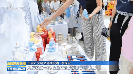 长治展区,上党雅乐悠扬回荡,黎侯虎机器狗与小朋友欢乐互动,国家级非遗——八义窑红绿彩瓷吸引来不少观众。