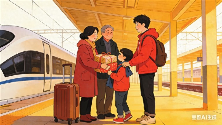 25岁的刘紫宁也要搭乘这趟列车,不过是在中途的长沙南站下车。她这次回来过年待了6天,大部分时间都与家人在一起,促膝聊天、一起逛街、饭店聚餐,享受了短暂却温馨的假日时光。眼瞅着假期结束,父母虽然没说啥,但一个劲儿地往行李箱里装东西,“他们恨不得把整个家塞进行李箱,舍不得我走。”