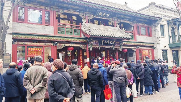 人们在钟楼街排队购买老字号元宵